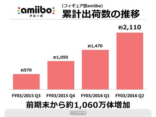 Огромной популярностью продолжают пользоваться и фигурки amiibo, линейка которых активно пополняется новыми экземплярами. В мае 2015 года Nintendo рапортовала о 10.5 млн, сейчас же речь идет уже о 21 миллионе реализованных игрушек.