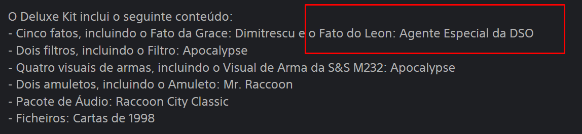 Одновременно с открытием предзаказов в сети заговорили о том, что португальское отделение PlayStation случайно рассекретило наличие Леона Кеннеди в Resident Evil Requiem. По сети разошелся якобы скриншот страницы PlayStation Store, где упоминается бонусный костюм для этого персонажа.