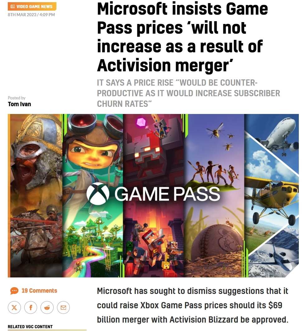 Ещё можно вспомнить как Microsoft утверждала что сделка по покупке ActiBlizz не привидёт к повышению цен на GamePass. А текущий материал Bloomberg это опровергает. Опять Майки набалаболили.